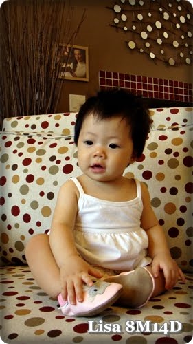 太久沒穿鞋的Lisa一開始有點不習慣,過了一會兒又抓又咬又啃的,還對著我笑,穿得很自在。